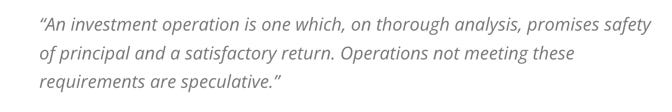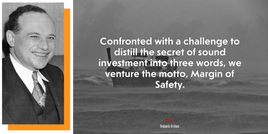 "Confronted with a challenge to distill the secret of sound investment into three words, we venture the motto, Margin of Safety." - Benjamin Graham