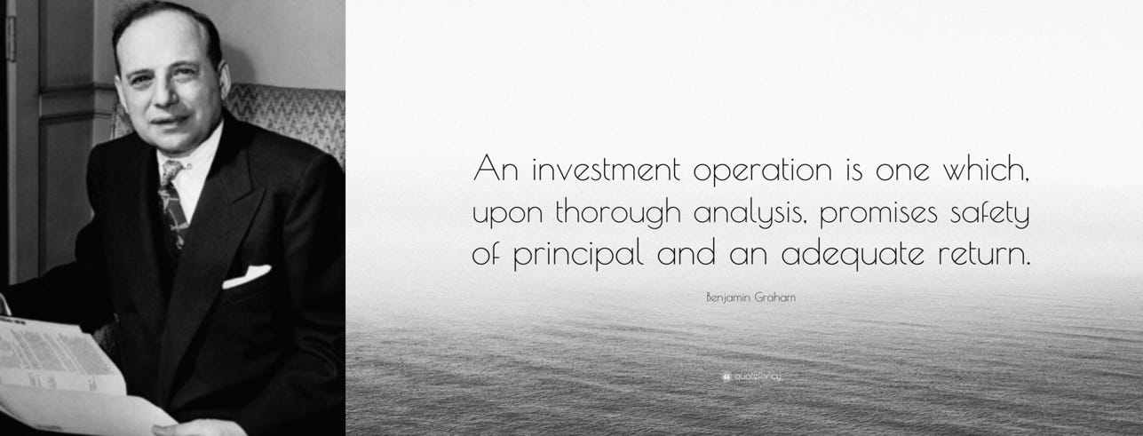 Benjamin Graham — “An investment operation is one which, upon thorough analysis, promises Safety Of Principal and an Adequate Return.”